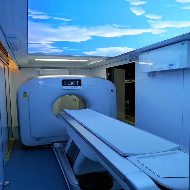 磁共振體檢車成像技術無輻射、分辨率高等優點被應用在臨床醫學上面。顯浩醫療不斷優化磁共振掃描儀的性能、開發新的組件。磁共振體檢車是目前高端的影像診斷手段,特別對神經系統、軟組織損傷和早期腫瘤的診斷精確度高。移動磁共振實現流動部署使用大大提高了廣泛運用。磁共振體檢車由廂式車廂改裝而成。